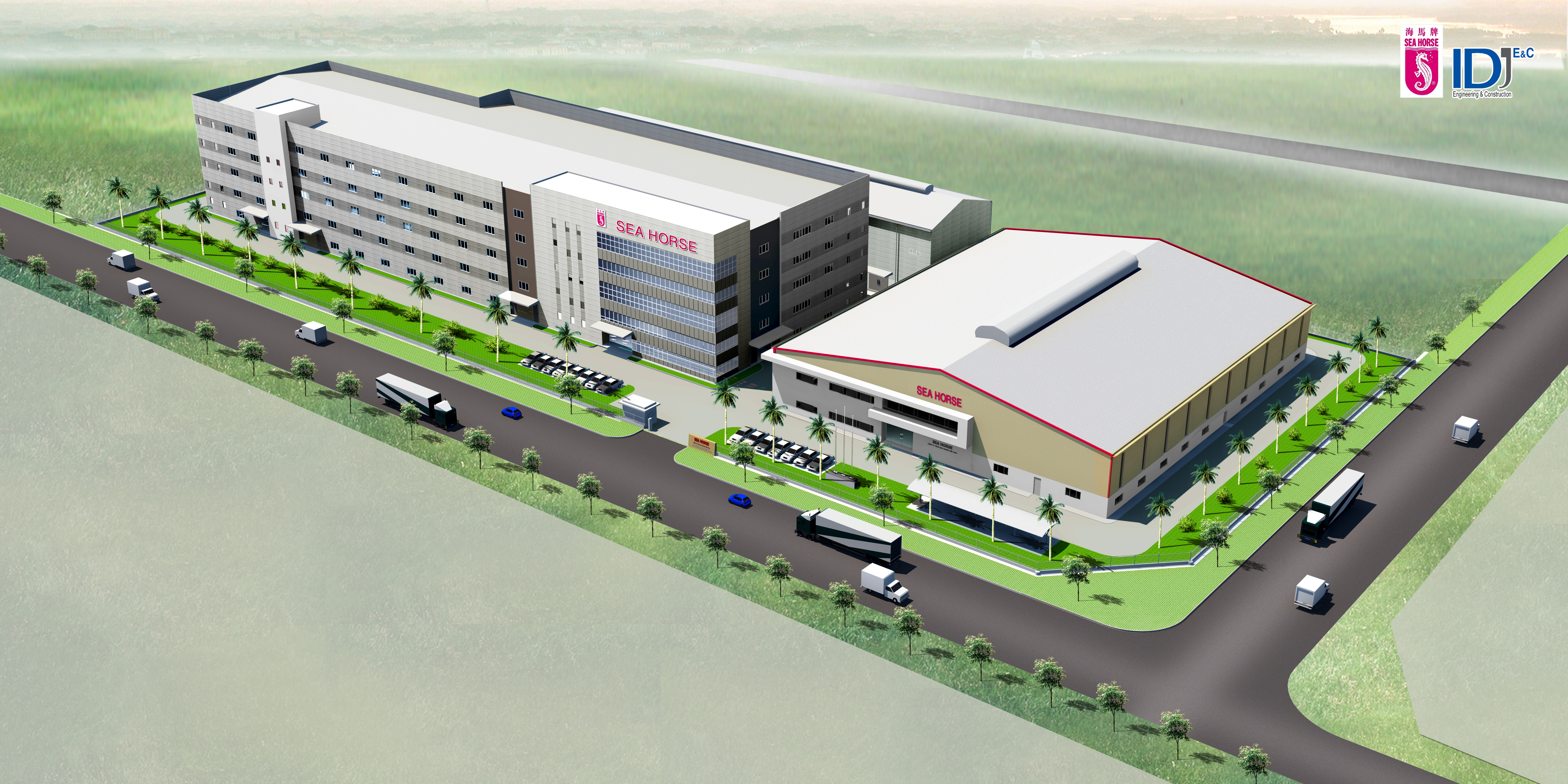 Seahorse is a wellknown brand in Hongkong. This project is invested at over ten million USD. With a total area of 2.3 ha at Vsip Hai Phong, completed: 2017. For this project, the Investor had special requirements for working space. IDJ Construction had suggested and implemented successfully a factory with steel structure bay strip reaching over 60m without column within.