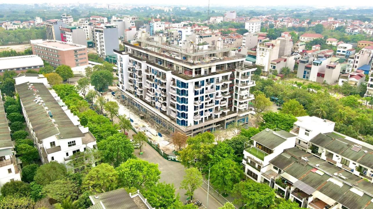 Project information: – 01 basement, area: 2,897m2 – 01 podium floor, total area: 1,243m2 – 08 floors of tower block * Scope of work: Structural construction, finishing, * Commencement: February 23, 2022